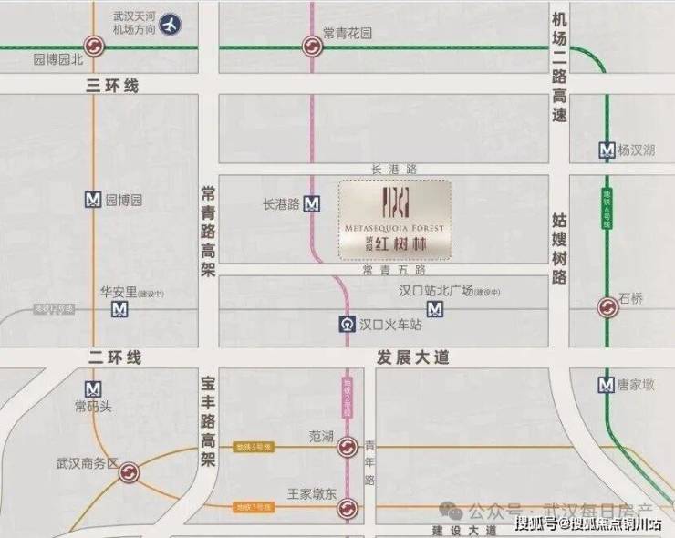 项目附近有三环、二环、常青路高架(汉江大道)、机场二高速等快速路,可便捷通往武汉三镇。