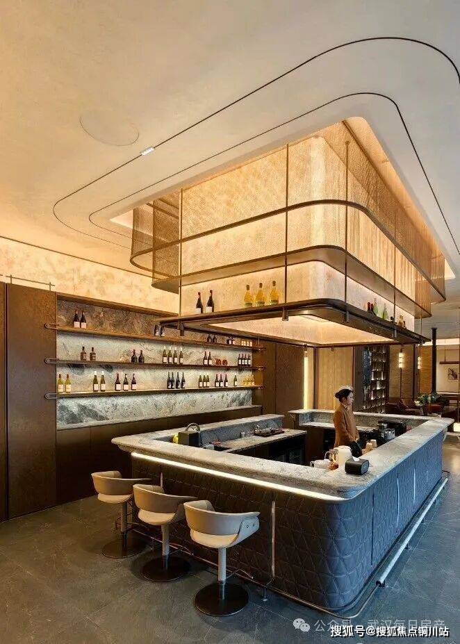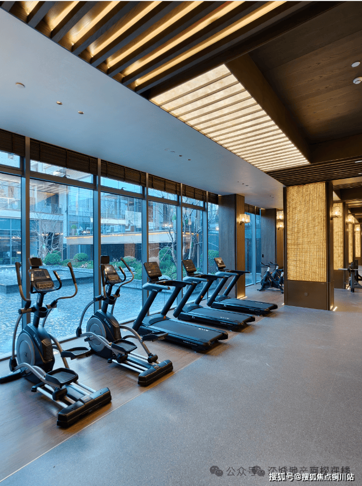 比如,健身房旁配置了更衣室、淋浴间,非常人性化,这在全武汉都很少见;比如,小区观景台造型、大门造型以及连廊镂空格栅都有非常明确的红杉元素;比如,区别于大量小区偏深配色,该小区以金色为主色调,与阳光、水景相映衬,整个小区的质感更明亮。
