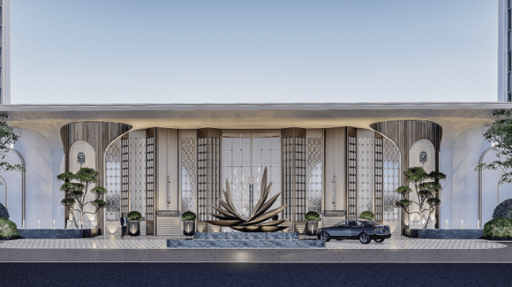 25年凤鸣金山,以超尺度酒店式入口、凤翎纹样的奢石之材,与经典海派的恢弘穹顶开启金翎凤羽的归家门仪。32种奢石107项甄选工艺,构筑金山难得的可触摸的“奢石艺术馆”,“金冠凤首”的独创美学立面,与曲幕流光屏共映金山的鎏金天际。