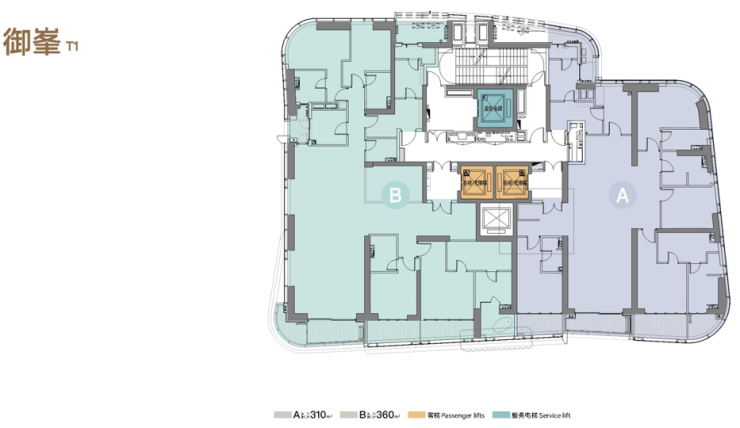 本次公开销售的房源位于项目T1座,主力产品为建筑面积约310及370㎡的四房户型。