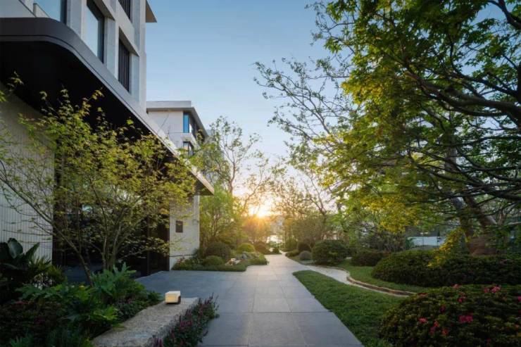 观山阁,构筑 360°环幕观景视野;花园夕照,定格 植物园花影 余晖的浪漫;灵谷望山,再现 梅花山 层峦的 毓秀……或 植 樱花 满园 ,或 造林 木 幽径 ,或 缀四季花海 , 十六座主题宅间花苑,各不相同。