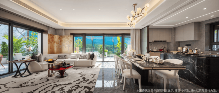 约240㎡样板间,滨湖四代宅的极致尺度,约70㎡横厅以7米南向尺度,盛纳生活百态。约17.3㎡北向阳台串联生活场景,开放式中西双厨消弭空间界限;约39㎡空中庭院(偶数层),约11米南向视野与270°极幕景观,每一次凝望,都是一场心灵的洗礼。