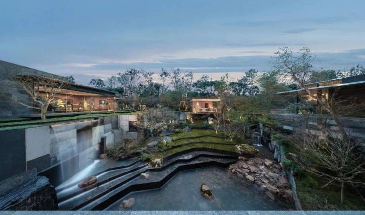 缓步其间,既能感受到东方园林的山水意境,又能领略空间的雅奢气韵。项目灵感源自《西园雅集》,打造了约10米高差的双层立体洄游空间,约3000㎡庭院在步履起承转合间,实现了池、泉、瀑、溪、涧的错落交织,营造出“园中院、院中园”的东方游园体验。