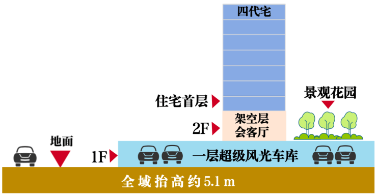 项目规划为4F真叠墅,分为上、下叠产品。通过摒弃中叠设计和抬高地坪,上叠配备超大星空露台与空中花园,下叠拥有超大庭院和露台,抬高后下叠地下室=普通别墅的一层!