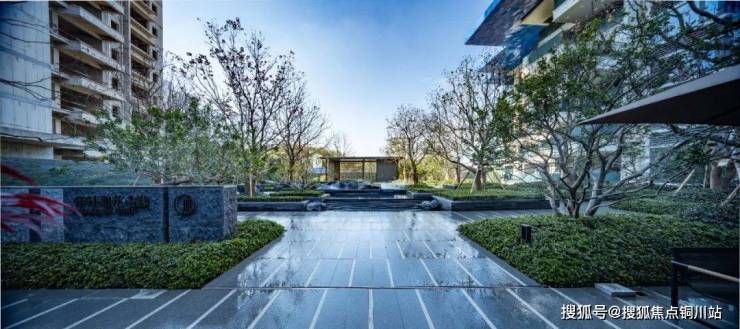 山脚下的树影,树冠下的石与玉。保利通过艺术化的设计,将大门与不远处的群山产生了联动、共生式的融入感。