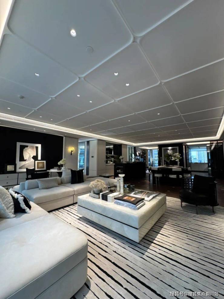 8米开间、11.6米进深,造就超100㎡的空中平墅欢聚厅。四叶草格局让四个房间分布四角,私密性拉满的同时,保证每位家庭成员的舒适体验。法式华夫格顶搭配三层隔音设计,隔绝外界喧嚣;地板与菲拉格慕白石材的拼接工艺,既显质感又适合孩子光脚奔跑。可灵活切换的巴士移门背景柜,关上遮挡电子屏,打开即是藏书展示区,还能变身下午茶角或儿童游乐区,让空间适配生活的无限可能。