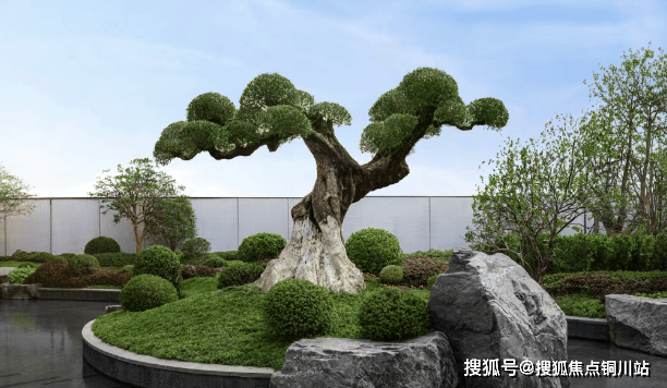 园林设计:采用 “一轴、一心、三庭” 的园林空间格局,勾勒出 “曲水流觞” 的大美意境,通过假山石、水景、长廊和曲径等元素,营造出浓郁的江南氛围。