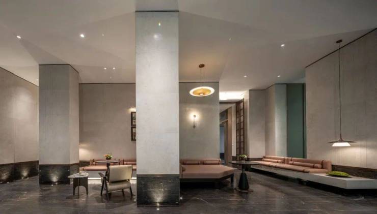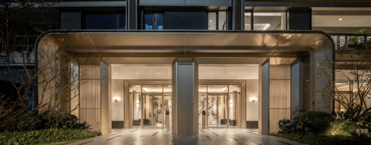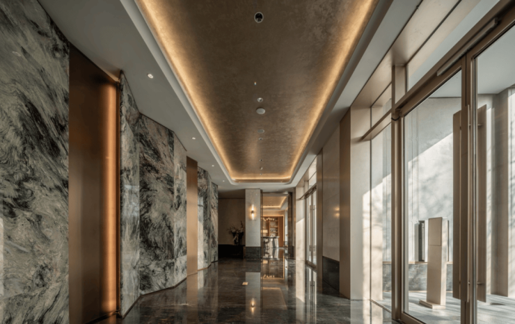 入户大堂“折叠版”大面积奢石背景墙,与绿城武汉黄浦湾异曲同工。