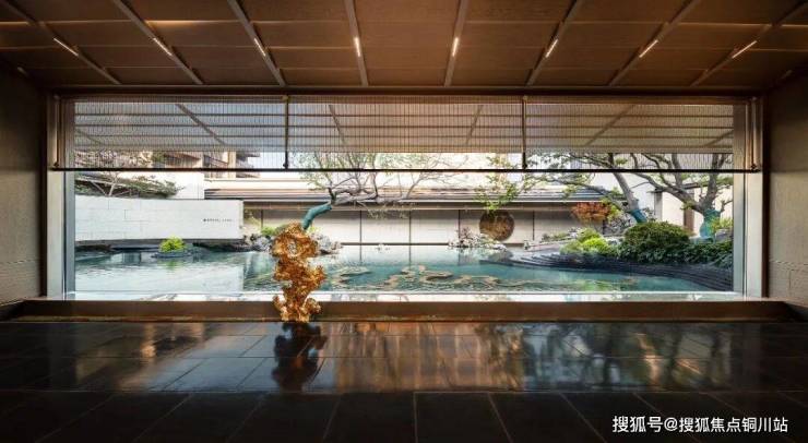 整体上规划了“两轴三进九园”的沉浸式空间,两条归家主轴贯穿,一进前庭,照壁映松影;二进中院,曲水流觞间可见龙光塔倒影;三进后院,红枫叠石重现秋日寄畅的诗意。