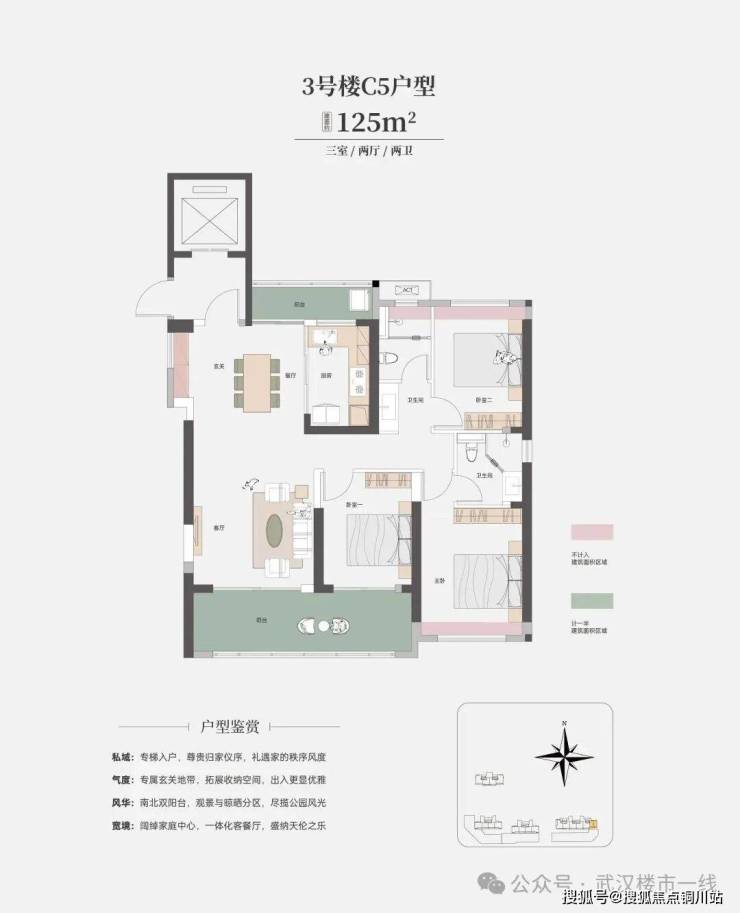 2、新增建面约125平南北通透边户,作为小面积段边户非常难得,与建面约133平户型同样可享专梯入户体验,毫无疑问是爆款。