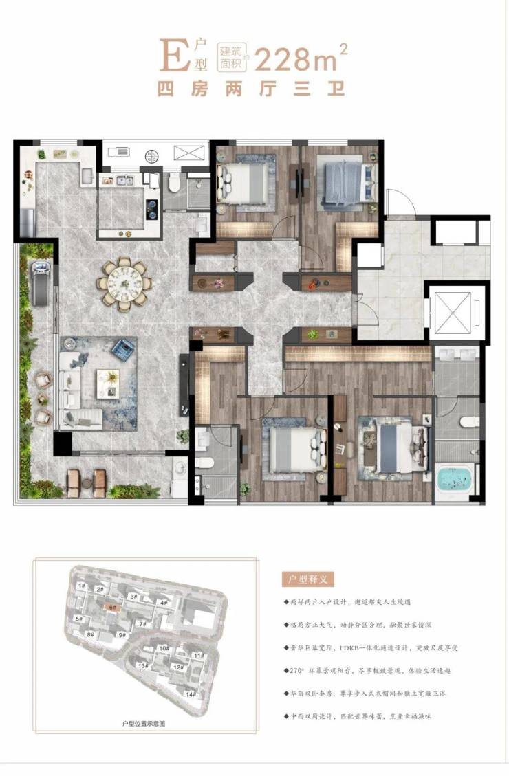 润和盛府是目前奉化主城区纯改善住宅先行者,项目总建筑面积约22万方,仅打造638席空中平墅,户型主力面积为158-228㎡,在建筑的尺度间,邂逅经验之外的惊艳。因此,当事业有成,生活进阶之时,一席低密度空中平墅,就是对自己和家人的最大犒赏,更是能够承载家族荣耀的传世奢宅!