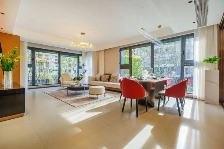 本次公开建面约143㎡、196㎡实景样板间,均拥享270°环幕瞰景,窗外的美景能自然地延伸至室内空间,旁边的两座山峦宛如一幅独特的背景画卷。