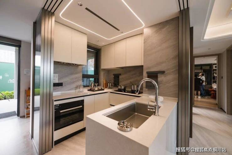 创新S墙设计,厨房扩容,轨道移门代替墙体,增加和餐厅的互动。