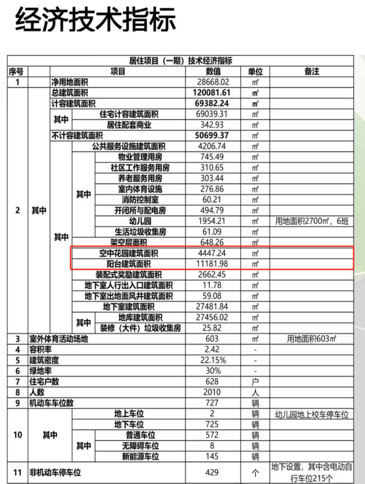 按照东湖高新区的最新政策来说:阳台不计容和产权面积。那么项目规划的11181㎡阳台面积和4447.24㎡的空中花园面积均不计容。项目户均面积大约110平,户均赠送面积约25平,同预估的大面积段产品有所出入,填补了今年小面积四代产品的市场空白。