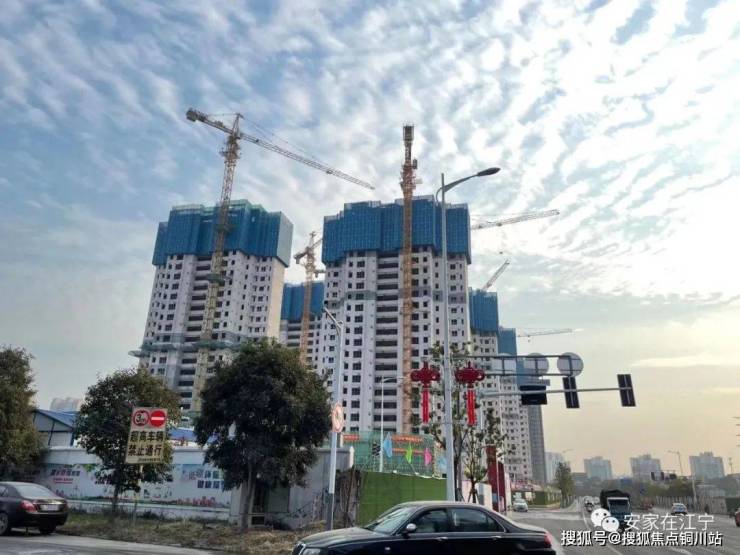 江宁金茂悦预计今年9月交付部分楼栋,由于体量比较大,靠售楼处一侧的部分楼栋还未封顶。