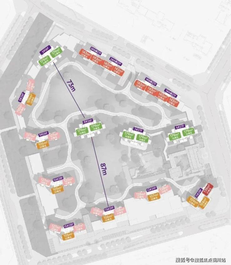 社区内最大楼间距约87米,大部分楼栋都有50-60米的楼间距,保障了景观视野。园林里还打造约6米高人工叠水瀑布,简直是把景区搬进小区。