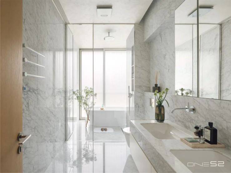 这些藏在细节里的心意,比任何标签都动人:装甲入户门的黑铜拉手,是匠人一锤一凿敲出来的温度,每道纹路都在说“欢迎回家”;卫生间约4×4mm的挡水边,是反复测算过的贴心,怕水滴惊扰了地面的宁静;就连紧急报警装置都躲在石材背后,像个沉默的守护者,只在需要时才轻轻回应。