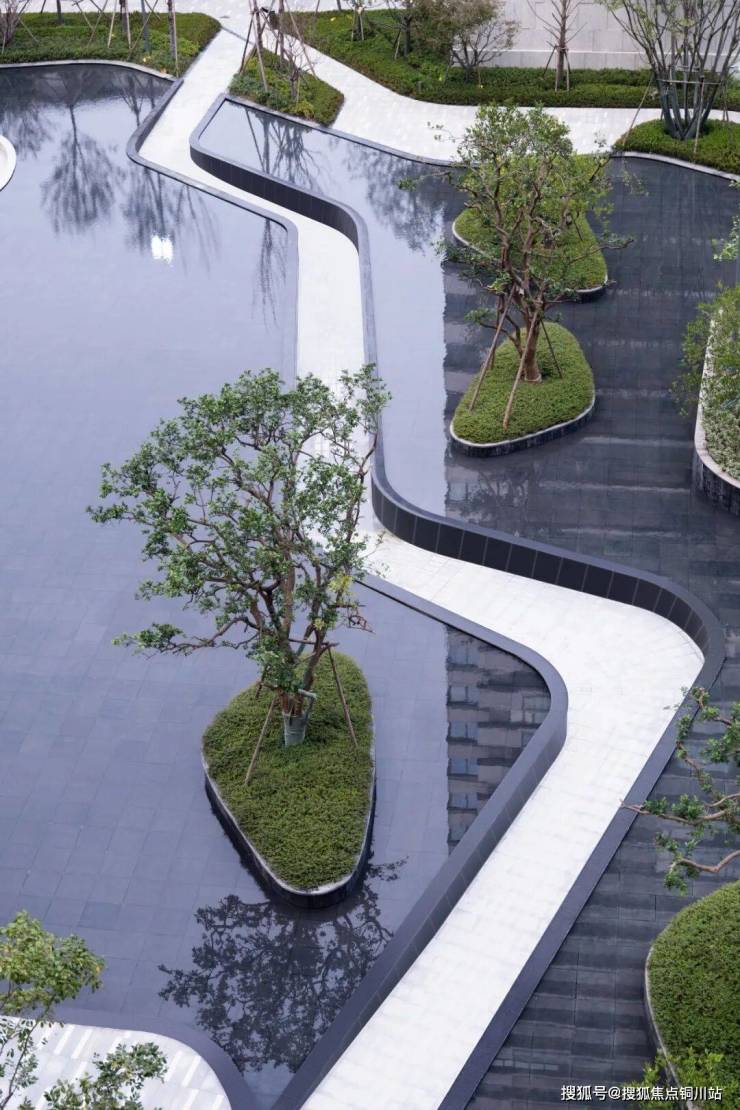 在施工过程中,我们对水流的声音、水质、水景灯光效果都有严格要求。同步考虑轻量化落地水景,降低水景荷载,结合水景效果考虑声音及水质问题。