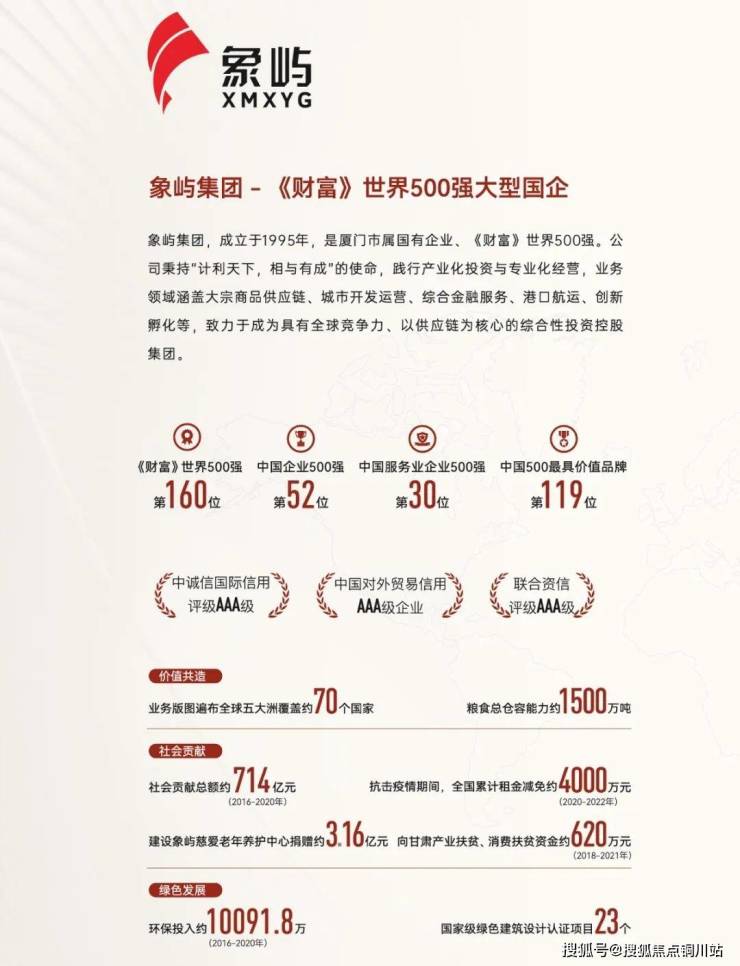 象屿集团成立于1995年,是厦门市属国有企业。业务领域涵盖大宗商品供应链、城市开发运营、综合金融服务、港口航运、创新孵化等,致力于成为具有全球竞争力、以供应链为核心的综合性投资控股集团。