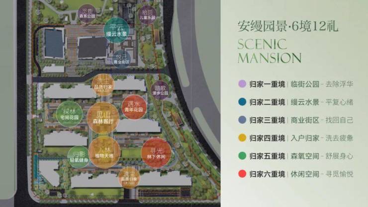 在景观空间的设计上,从绿地公用地到商业到社区大门到社区景观到入户大堂皆采用安缦风格打造,形成隐奢的6境12礼景观体系,营造出极奢的度假生活。