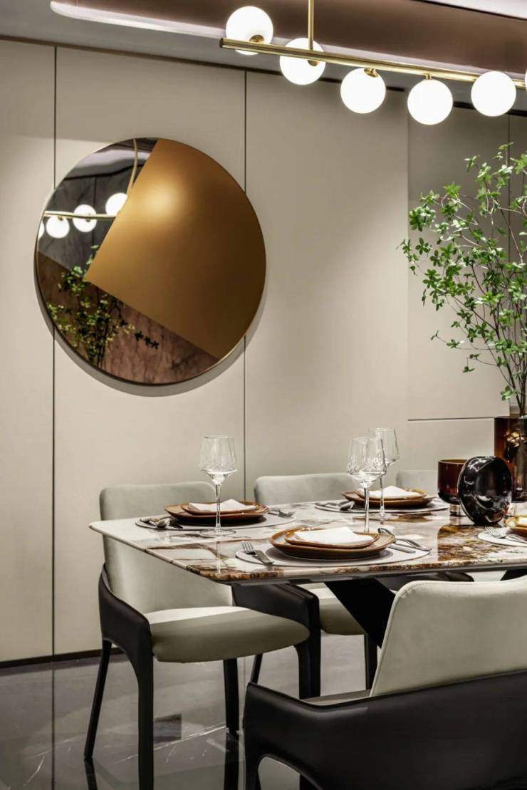 厨房设计:厨房最大面宽做到约 4.8 米,最小面宽也达到了 3.95 米,格局方正匀称,奢阔而明亮。建面约 220㎡、250㎡高改户型,还精准搭配尺度合宜的中岛台,可作为西厨操作台、收纳空间、隔断空间或交流平台。
