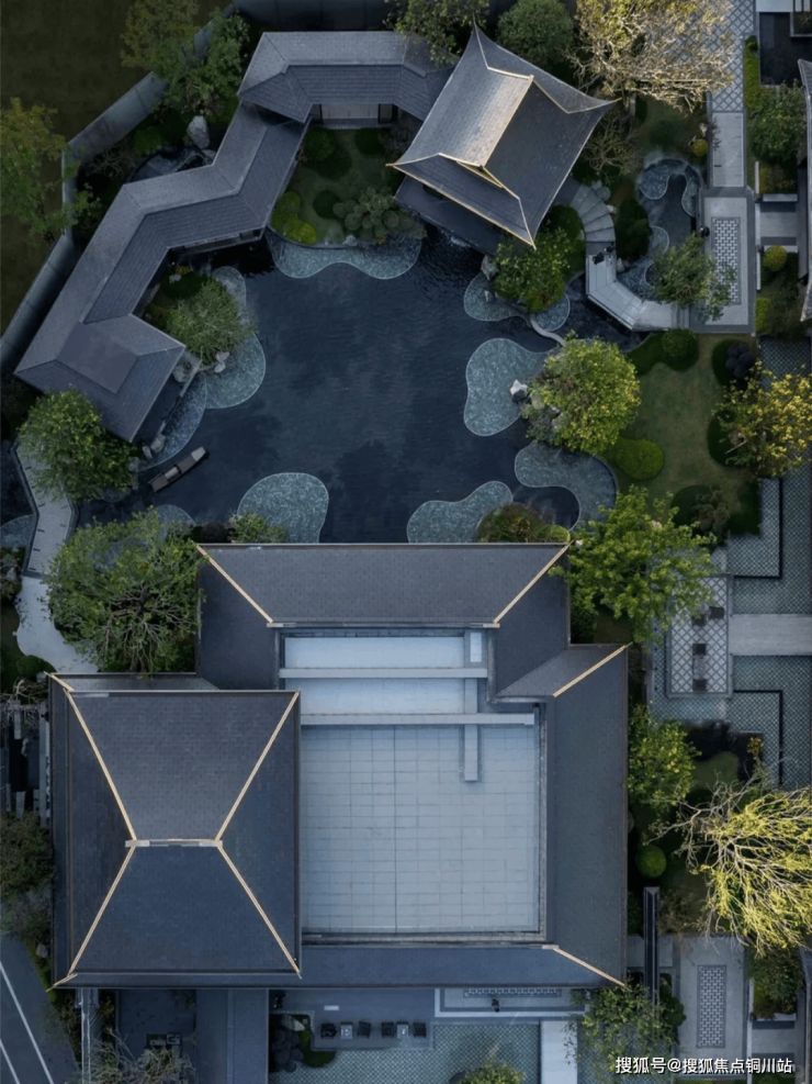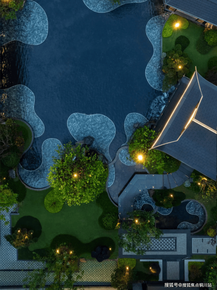 示范区园区景致宛如宋代绵长的琴音回响,以“宋韵”为核心,深植于山水交融之中。碧波荡漾的池塘与屹立不倒的山石相映成趣,步移景换间,每一角落均沉浸在自然和谐与人文雅致的交融之中。设计师巧妙选取与自然和谐共鸣的植被,凭借精细入微的构图与巧思布局,把植物的生机与空间的魅力编织成一幅现代与诗意共融的园林画卷。
