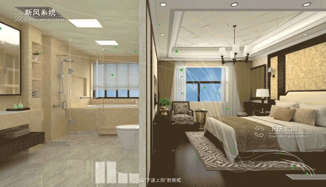 此外,采用全置换式新风系统,PM2.5过滤效率可达95%左右,以下送上排的方式,源源不断地将清新空气引入室内,约1-2小时实现室内空气置换,确保家中空气始终保持清新自然。
