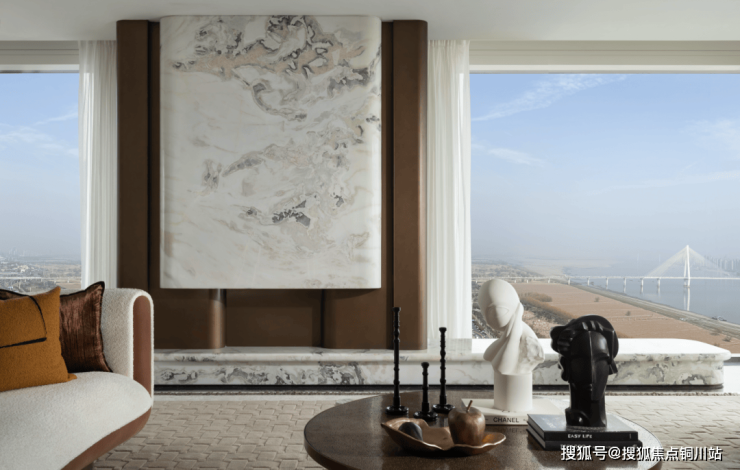 280户型融合了海派与法式风格元素。客餐厅利用两面幕墙引入自然光,营造通透的空间感,衔接室内外视野。芬迪白奢石与艺术金属精心打造壁炉造型背景墙,作为法式空间符号,展现了空间的高贵与艺术气息。餐厅采用雅致长桌设计,颠覆传统,为空间增添流动美感,南向主次卧,均以奢华酒店套房为设计蓝本,将法式风格的奢华与舒适融为一体。 在这里,不仅可以享受到优雅和浪漫,还能透过窗户领略到长江大桥的壮丽景色,尽显生活品位和人文气息。