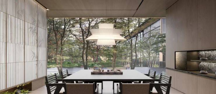 『天青公园+中庭花园+下沉庭院+后场花园』四重归家动线,移步异景,婉转层次,将自然的水之静、园之幽、景之美皆藏于一园。