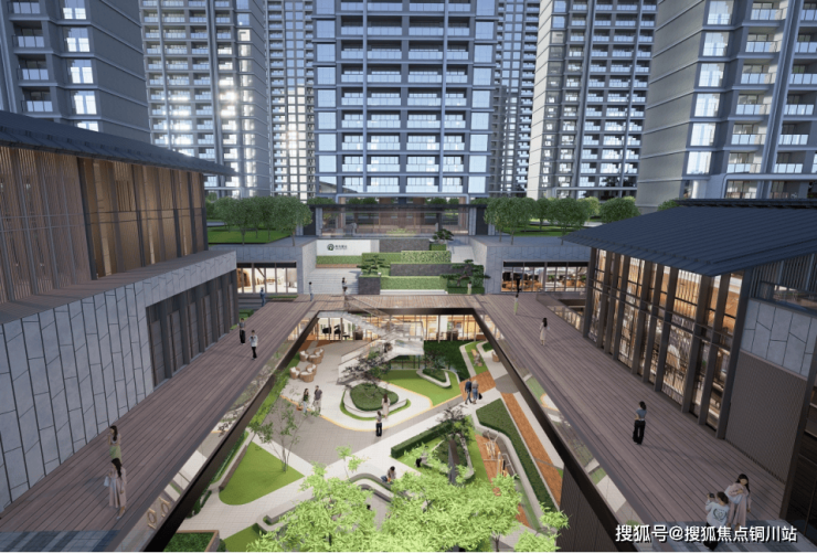 以“邻里不一样”的主题定位,采用“多首层、开放式”建筑布局,于用地南侧打造出功能复合、空间多样的邻里中心型TOD,成为承载“新邻里”内涵的社区空间。摆脱传统盒子式商业形态,采用街巷式布局,打造7000平方米开放式街区,以连廊进行功能衔接,结合景观、休闲设施打造舒适的商业配套空间及全天候社区聚场,为周边居民提供舒适的惬意空间,激活了住区人文生机和商业活力,成为了居民除家和公司、学校外的第三生活空间。