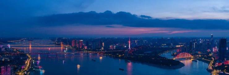 「一江」为轴:长江精华段如鎏金缎带,西承汉水碧波,东接天兴洲浩荡,昼夜光影交替间,江水或沉静如墨或鎏金跃动。