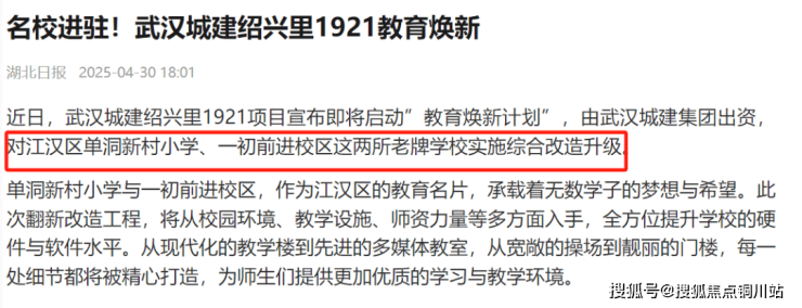 据说,武汉城建集团将出资8500万,升级改造单洞新村小学+一初前进校区,单洞新村小学暂定名为一初学苑小学部,多么清晰的路径!
