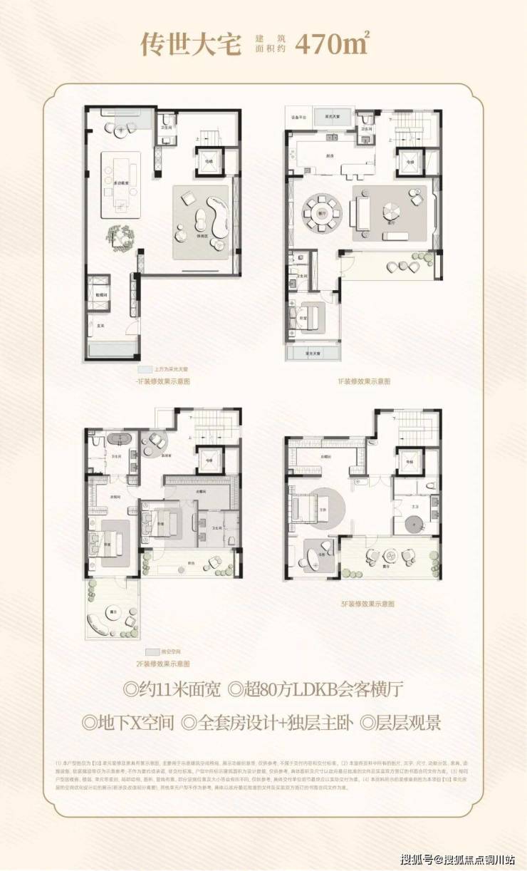 建面约295㎡赏心平墅/约380㎡闲适下叠/约470㎡合院户型,臻席封藏。