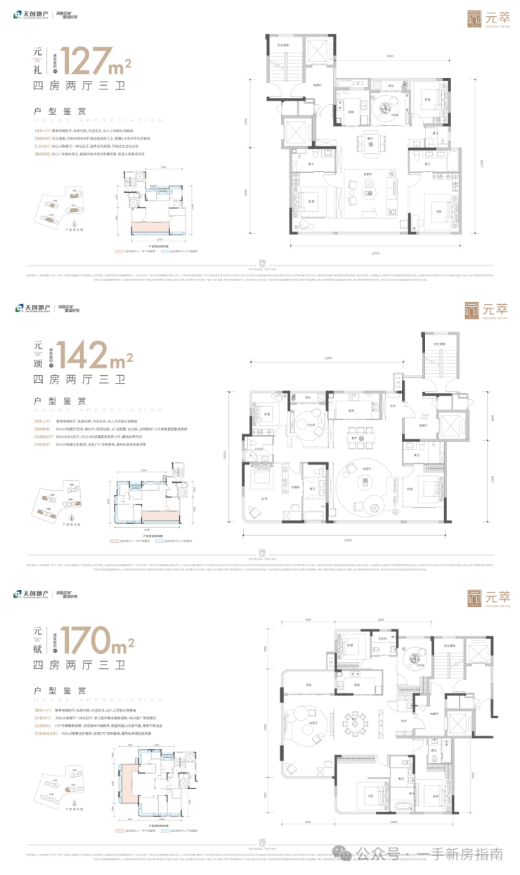 项目主打建面约127-170平户型,目前公示了三个户型图,分别是127、142、170平