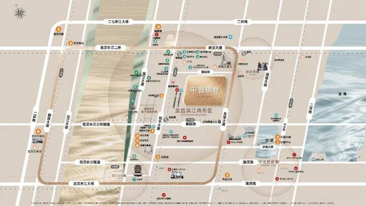 中寰悦府坐落于武昌滨江内环核心区域,紧邻武汉大道与友谊大道这两条迎宾级双大道,构建起内环效率十字轴,交通优势得天独厚。项目周边 2 公里范围内,密布着亲橙万象汇、武昌万象城、M758、京东 MALL、龙湖滨江天街(建设中)、群星城等 9 大商业,形成了强大的商业矩阵。在这里,您可以轻松邂逅全球一线品牌,品尝来自世界各地的美食,享受丰富多彩的娱乐活动,真正实现一站式品质生活。不仅如此,项目距离超级 TOD 国际空间站三地铁交汇的徐家棚站(5、7、8 号线)约 600 米,距 8 号线徐东站约 900 米,便捷的轨道交通让您可以快速畅达武汉三镇的各个角落。同时,长江公铁隧道联通全国至大 TOD 地下环路工程,跨江效率翻倍,为您的出行提供更多便利选择。