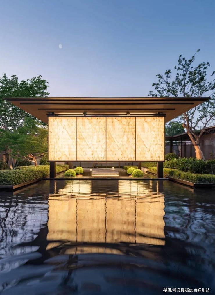 在巴西白玉石板构筑的轩堂之中,光线穿透而不显身影,夜幕低垂,华灯初上,亭子犹如繁星闪烁,倒映在波光粼粼的水面上,宛若一串漂浮的夜明珠。于此小憩,晴日读书品茗,雨时聆听雨声,沉浸于山水隐园的独特韵味,尽享岁月的宁静与美好。