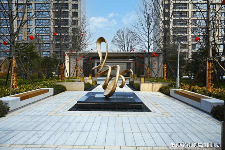 高耸的乔木、繁茂的草坪、应季的花丛,还有叠水景观潺潺流动,香槟色雕塑飘逸灵动,立体多维的景观组团,从进门之初便叫人移不开眼。