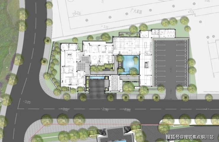 入口前庭是度假式生活的起点。璞拾胥江入口处的转角景墙仿佛一卷画卷,把嘈杂与喧嚣隔绝在外,营造出了尊享街区的领域氛围。第一个入口庭院引入了天光,将四方前庭打造成奢华又隐秘的酒店式入口。