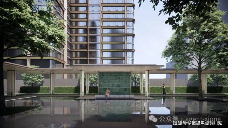 镜面水院倒影建筑美学,风雨连廊串联下沉庭院(叠泉绿台),园林即金融精英的第三会客厅。