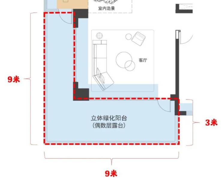 相较于普通阳台更加低调隐蔽,且具备更大的进深尺度。