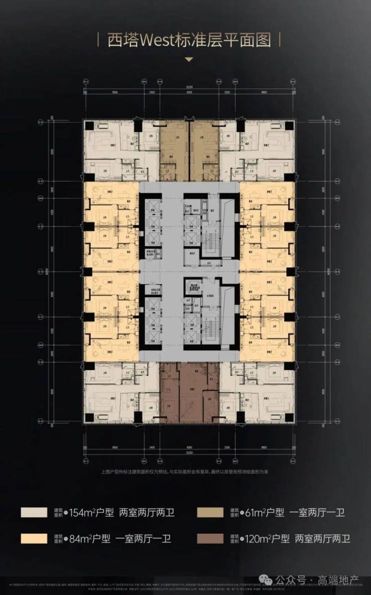 西塔: 48层/60-84-120-160㎡ /层高3.4m