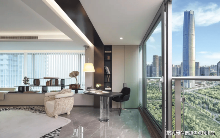 在武汉湖畔云庐,高层产品遵循“少即是多”的设计哲学,通过全玻璃幕+铝板外墙的搭配,以更具高级感的蓝灰色为主调,纯粹的横向线条及轻薄的建筑体量,当你抬头望去,“立方屏”的建筑美学,犹如一块钻石,筑起独具特色的都会天际线。