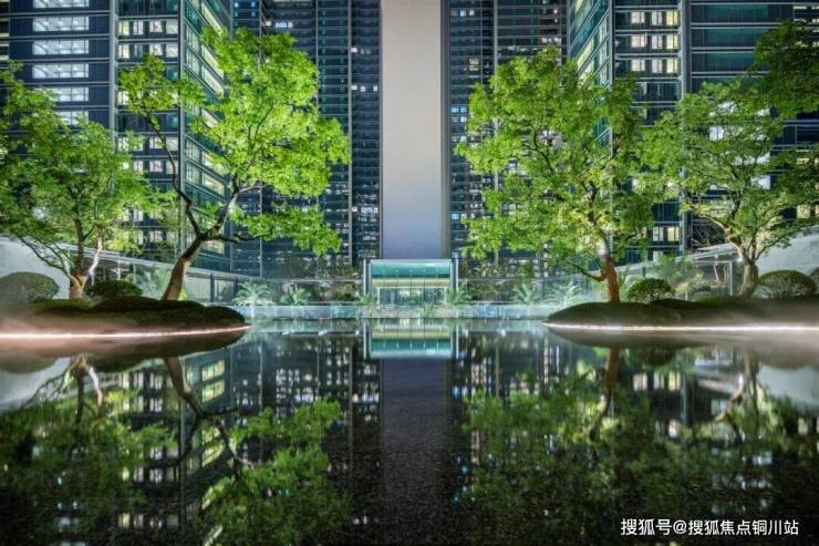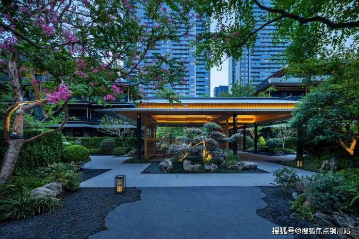 步入园区主入口,大门檐口轻薄而舒展,整个主入口抬高三至四米,带来极具通透的视野之余,也筑起高阶仪式感的归家享受。