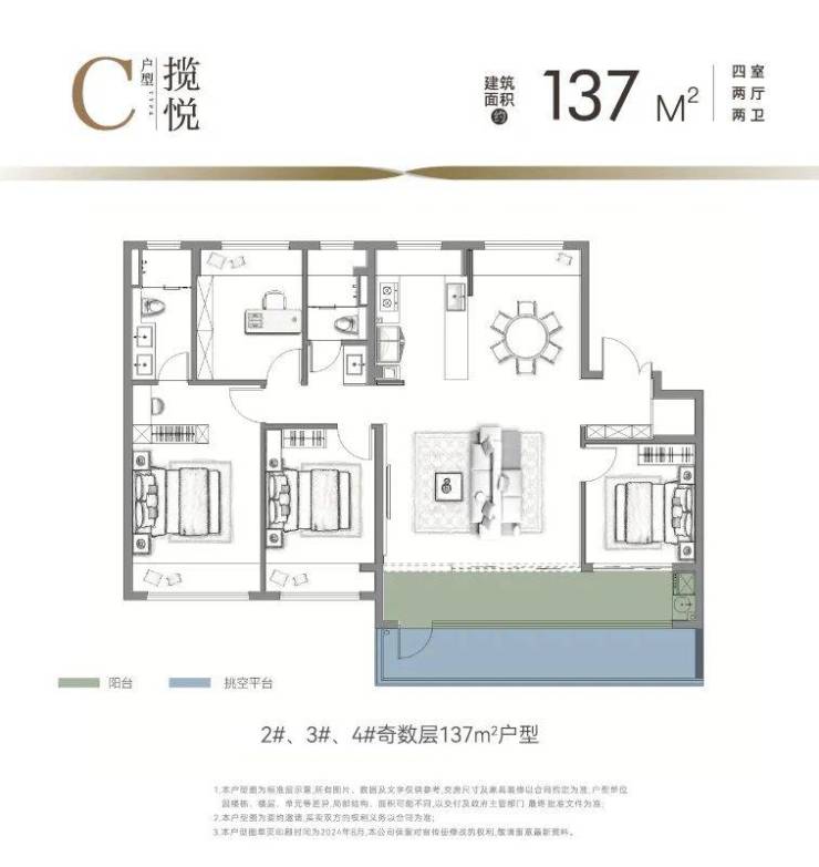 ▼ 建面约137㎡户型(奇数层)