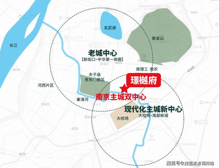 有意思的是,城心板块的金基·璟樾府,不仅是南京主城双中心的交汇,更是主城四象限中的交汇。