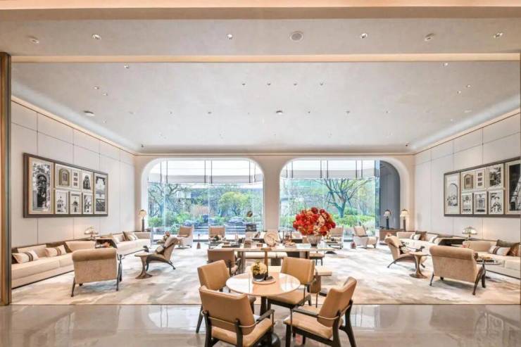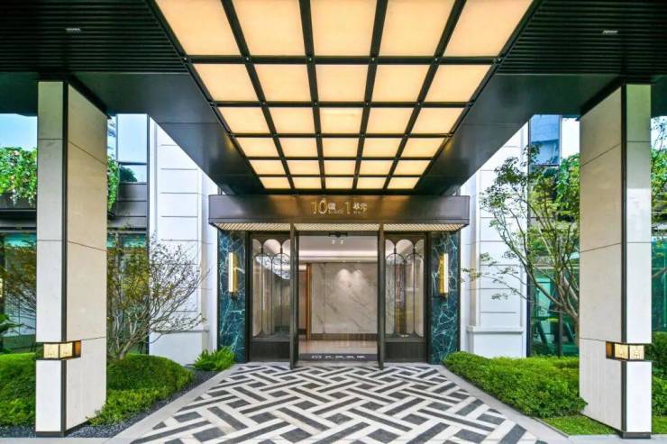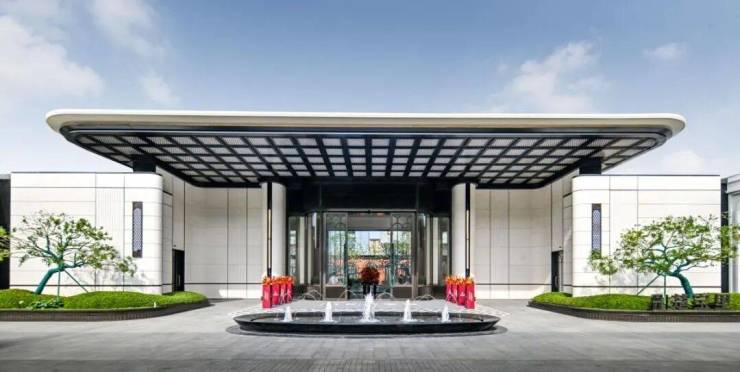 瑰丽门庭,海派气度非凡,用石材及金属细节彰显贵气,环岛落客区设置艺术水景,如一卷书册。