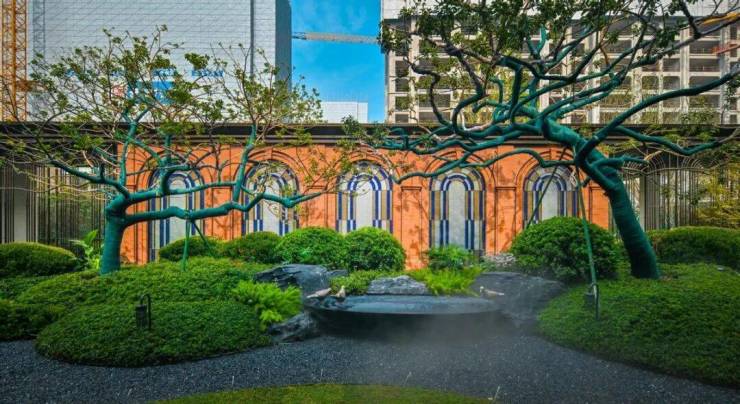 景观叙事相结合,将民国建筑“方中见圆”的线脚符号融入景墙铺装,高低错落的植被交织成天然绿屏,四时景致移步易景。