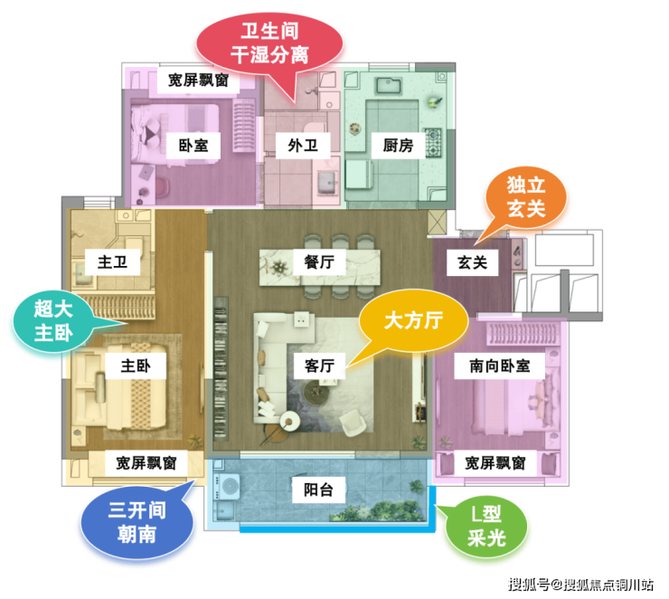 宽屏大阳台,可以是咖啡吧、小花园、观景台、健身房、瑜伽室,更宽的尺度,创造出更多元的生活方式。