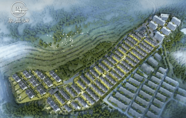 整体布局:项目低山环绕,平均海拔高度 66 米左右,打造新中式绿氧山居,南区为联排。