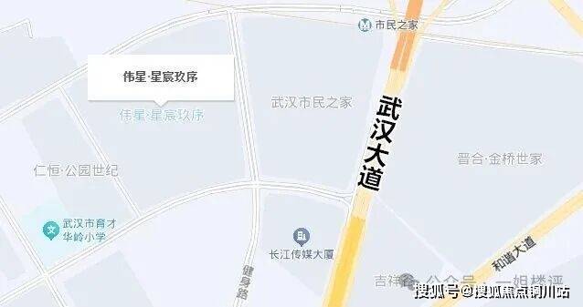 伟星星宸玖序项目位于江岸区健康街与健身路交汇处,东边紧邻武汉市民之家、武汉大道。